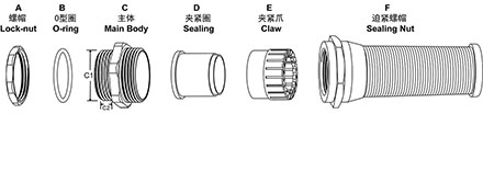 Protection level:in the range of the specified bayonet, use the O type seal ring to tighten the fastening head to IP68-5Bar.
